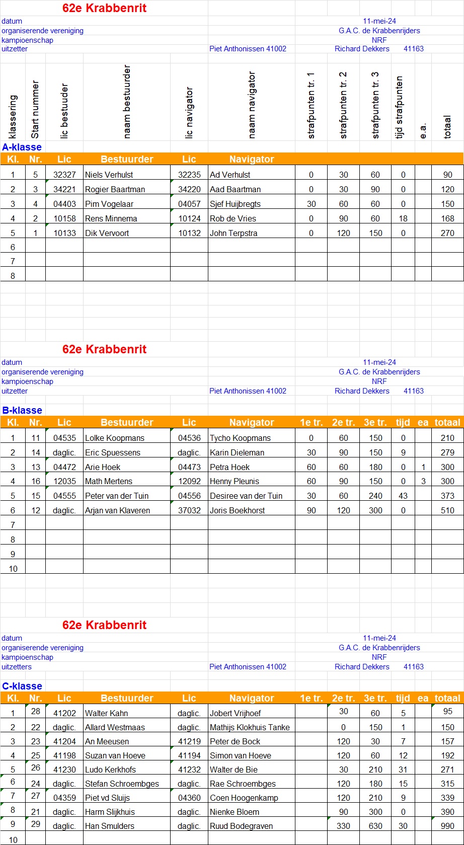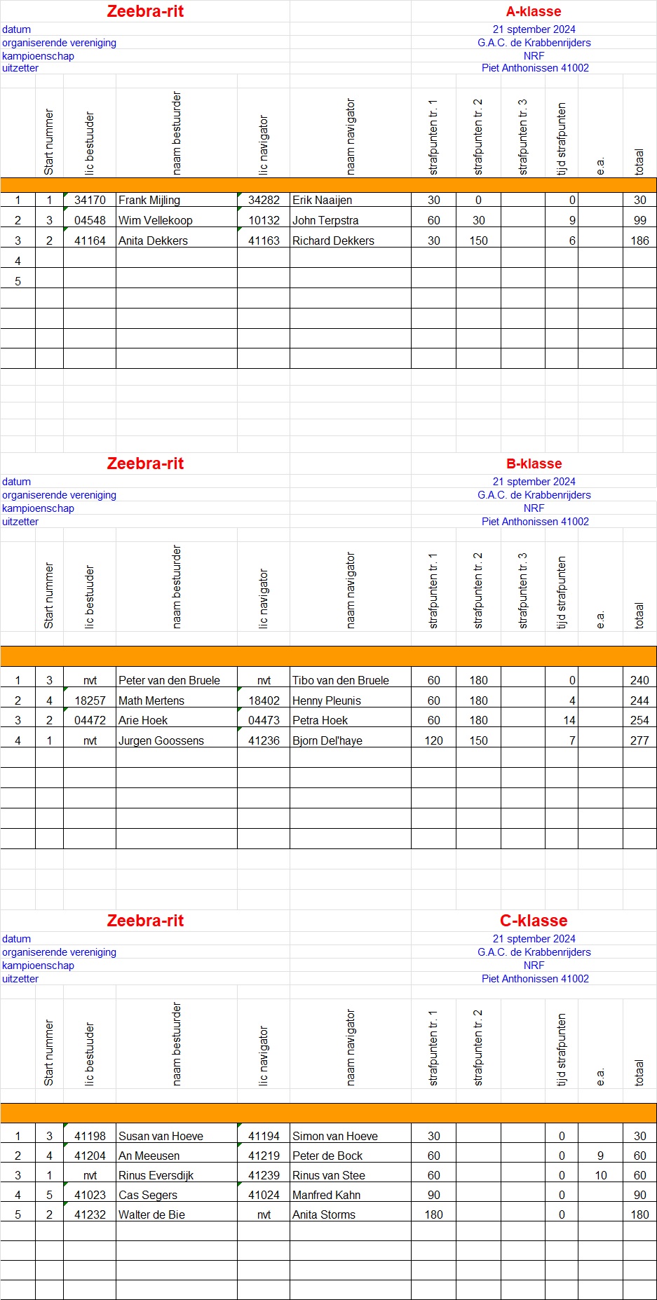 Uitslagen Clubritten