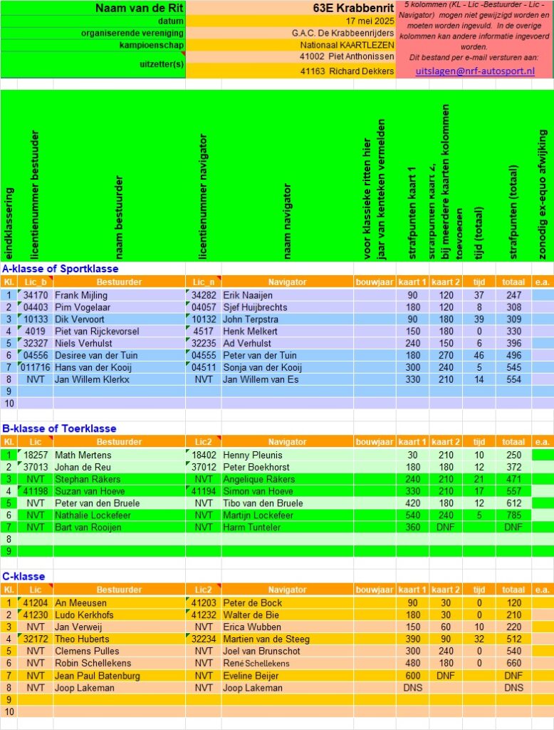 Volledige uitslag combirit 25 januari 2020