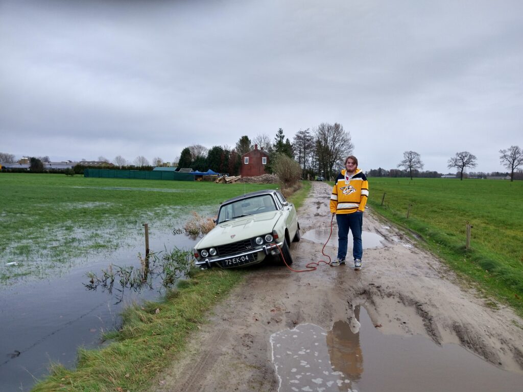Gelukkig door een behulpzame boer met tractor weer op weg geholpen.